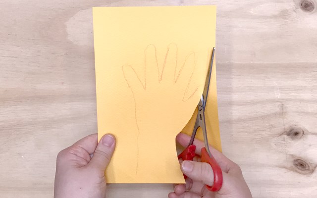 1) 색지에 유아 손을 대고 외곽선을 그린 후 가위로 자른다.