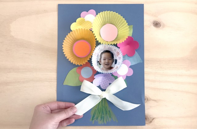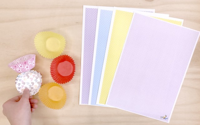 2) 컵케이크 유산지 안에 원 도안과 사진을 붙인다.