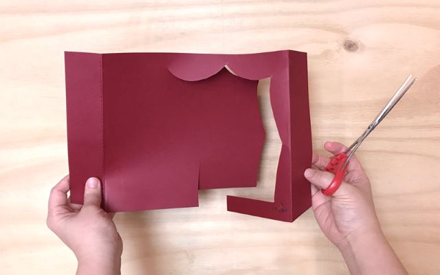 2) 무대 밑판 도안을 반으로 잘라 접고 무대 앞면과 붙인다.