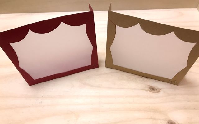 1) 무대 앞면 도안을 접고 오려서 무대 앞면을 만든다.