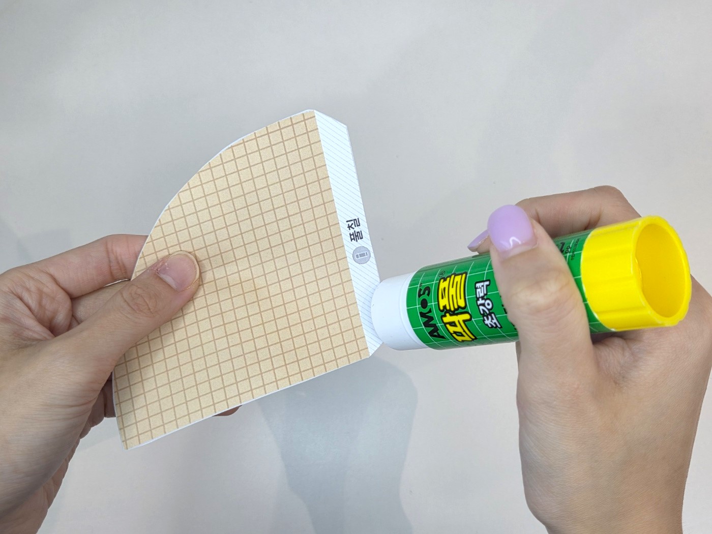 ▲ 풀칠하는 부분에 풀을 바르고 붙여 콘을 만들어 주세요.